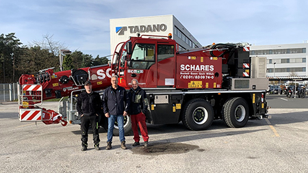 Crane operator Andreas Erzening could have hardly imagined a better way tohonor his 30th work anniversary at Autokrane Schares, with the company’s newTadano AC 3.045-1 City being assigned to him from the get-go. Schares ManagingDirector Tim Schlattmann recently picked up the new machine in Lauf, where itwas handed over by Tadano Sales Manager Helge Prüfer.