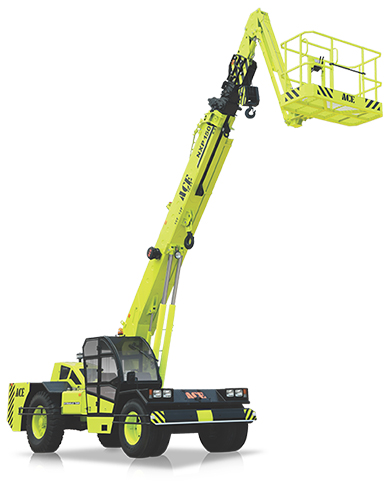 Thesemachines have been developed by ACE at their in-house R&D Centre. Thesetypes of multi-activity cranes with articulated steering are the first in theworld and ACE has already applied for the necessary patents for the entireseries.